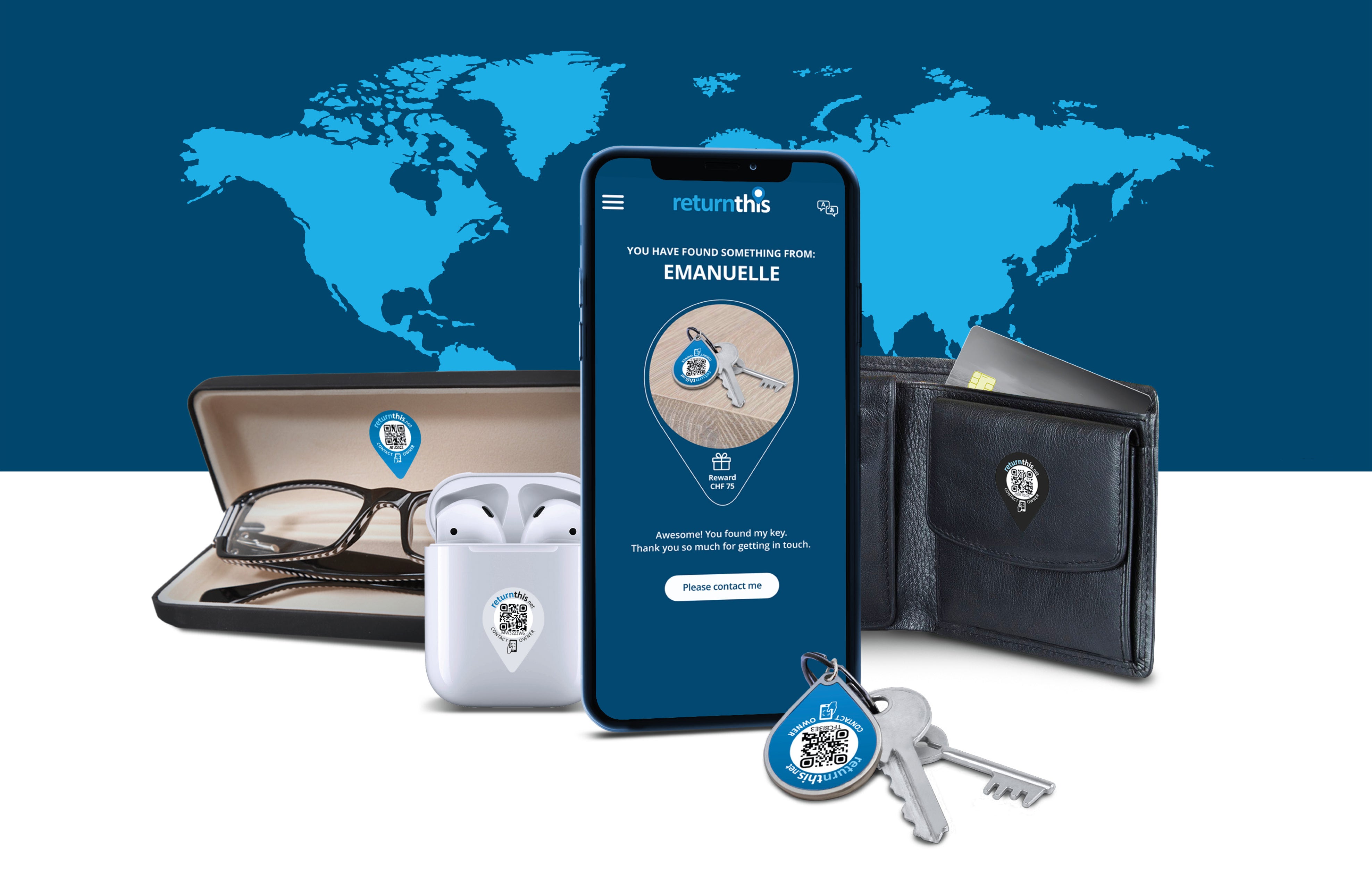 Scane den Pin-Kleber mit der Smartphone Kamera. Setzte ein kostenoses returnthis Profil auf. Erfasse den Gegenstand. -